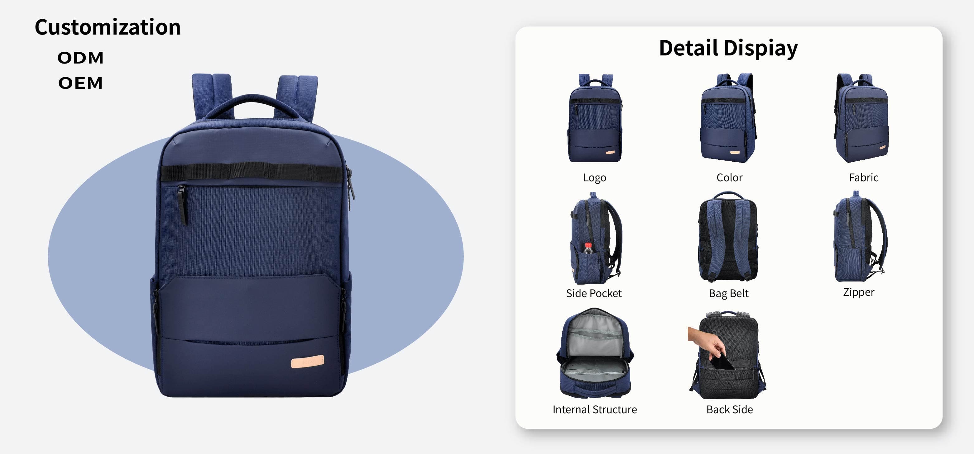 R: Ofrecemos una amplia gama de opciones de personalización, que incluyen selección de materiales, combinación de colores, cremalleras, asas, forros, bolsillos, hebillas y detalles de marca para satisfacer las demandas de su mercado.