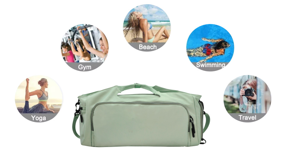 Green,Customized【Atlético y elegante】 Descubre la bolsa multiusos, una bolsa ingeniosamente diseñada, perfecta para el gimnasio, viajes, natación, playa, sauna o como bolsa de fin de semana. Su tamaño compacto también la hace ideal como equipaje de mano en los vuelos.